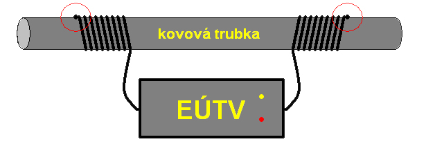 inštalácia na kovovú trubku - konce vodičov navinutých cievo odizolovať a vodivo spojiť s trubkou