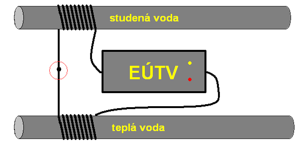 inštalácia jedného prístroja na dve trubky - konce navinutých cievok vodivo spojiť
